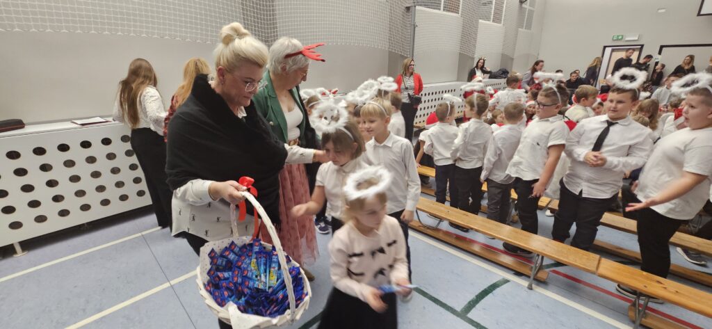 W naszej szkole odbył się wyjątkowy Kiermasz Świąteczny, który jak co roku wprowadził wszystkich w radosny, przedświąteczny nastrój. Uroczystość rozpoczął występ uczniów klas 1–3, do których dołączyli także chętni przedstawiciele klas starszych. Wspólnie zaśpiewali piękne kolędy i pastorałki, tworząc ciepłą, rodzinną atmosferę.