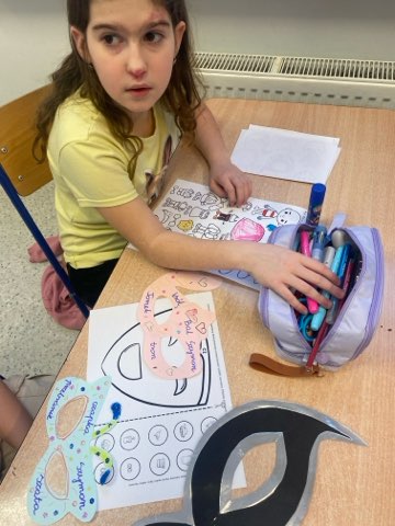 Karnawał to doskonały czas by ćwiczenia logopedyczne odbywały się z wykorzystaniem karnawałowych rekwizytów. Uczniowie podczas ćwiczeń oddechowych wykorzystywali konfetti, balony, wężowe serpentyny. Maski karnawałowe sprawdziły się do ćwiczeń artykulacyjnych.