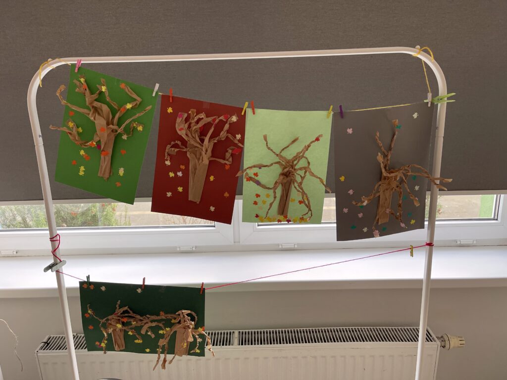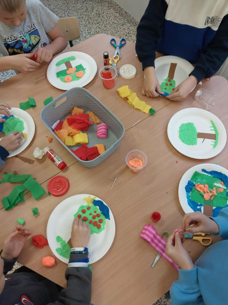 Zajęcia plastyczne były nie tylko okazją do zabawy, ale też do rozmów o jesieni, jej barwach i zmianach w przyrodzie. W świetlicy zrobiło się przytulnie, radośnie i bardzo kolorowo!