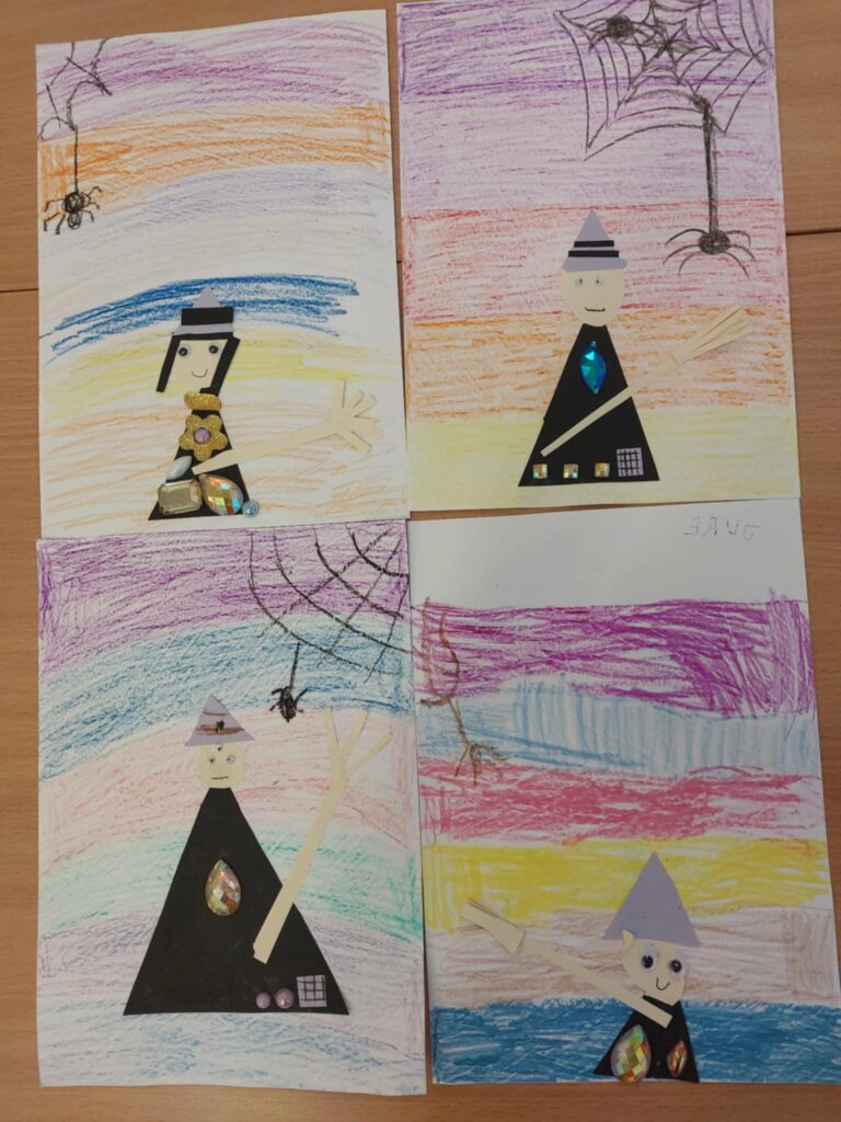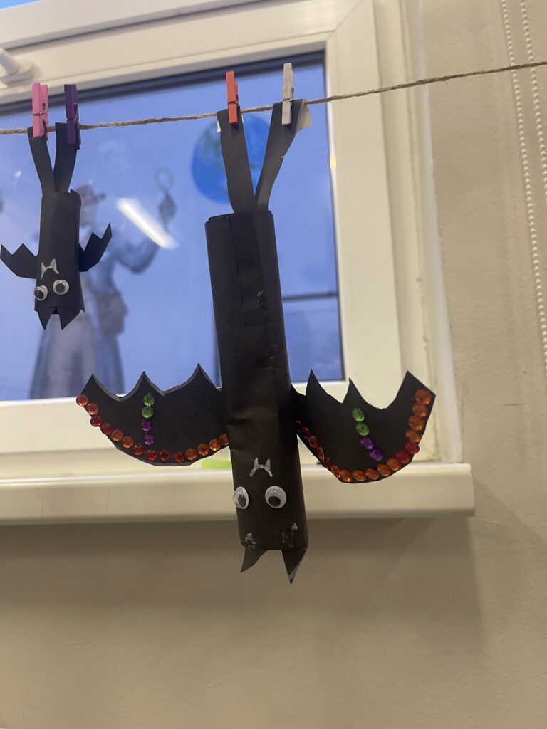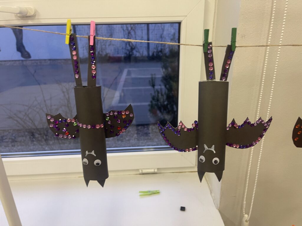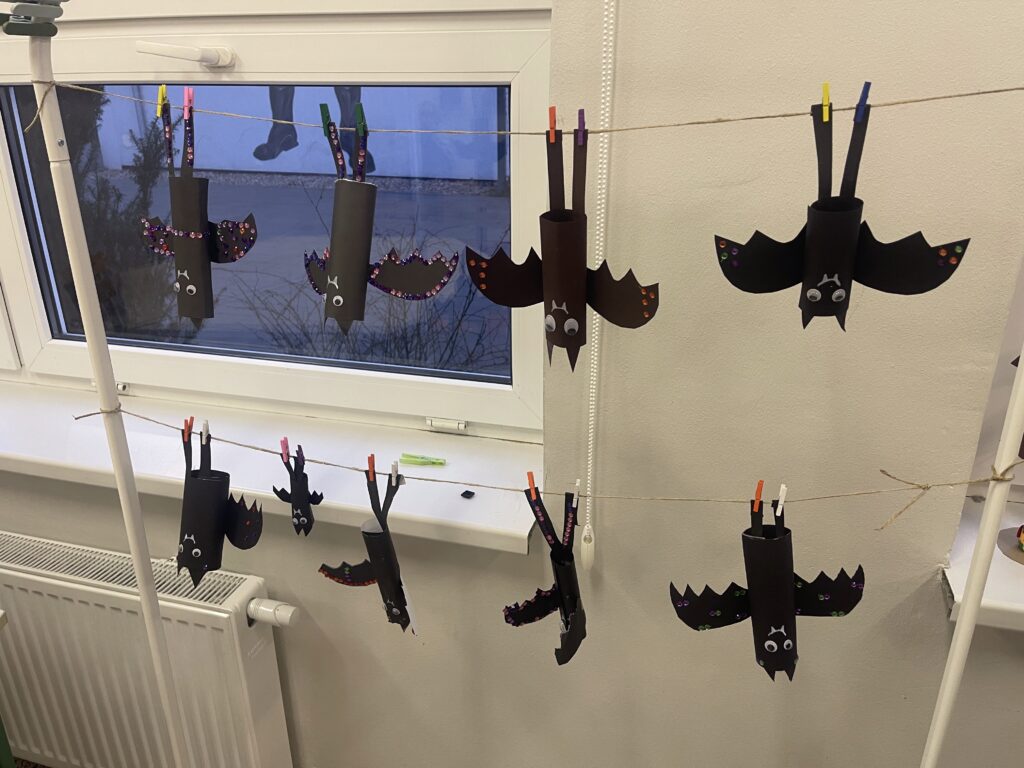 - Nietoperze – powstały kreatywne, czarne sylwety z papieru, które dzieci ozdabiały według własnych pomysłów